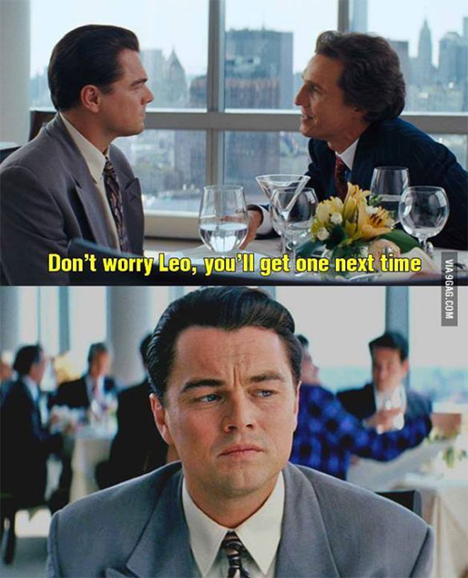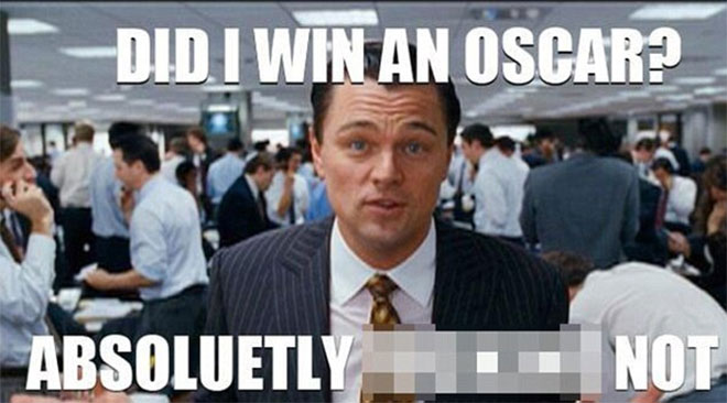 Στο διαδίκτυο κυκλοφορούν από χθες τα ξημερώματα πολλές χιουμοριστικές εικόνες με πρωταγωνιστή τον Leonardo DiCaprio που ενώ ήταν υποψήφιος και πάλι για το Όσκαρ του πρώτου αντρικού ρόλου, τελικά δεν τα κατάφερε.