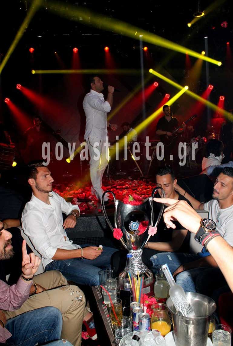 Με την κούπα της νίκης να φιγουράρει πάνω στο τραπέζι, λίγες ώρες μετά την νίκη τους υπέρ της Ξάνθης, όπου το βράδυ του Σαββάτου χάρισε στον Ολυμπιακό το 27ο Κύπελλο Ελλάδας, σύσσωμη η ερυθρόλευκη ομάδα, έσπευσαν να το γιορτάσουν, υπό την μουσική υπόκρουση των Χρήστο Χολίδη και Χρήστο Μενιδιάτη στο Frangelico.