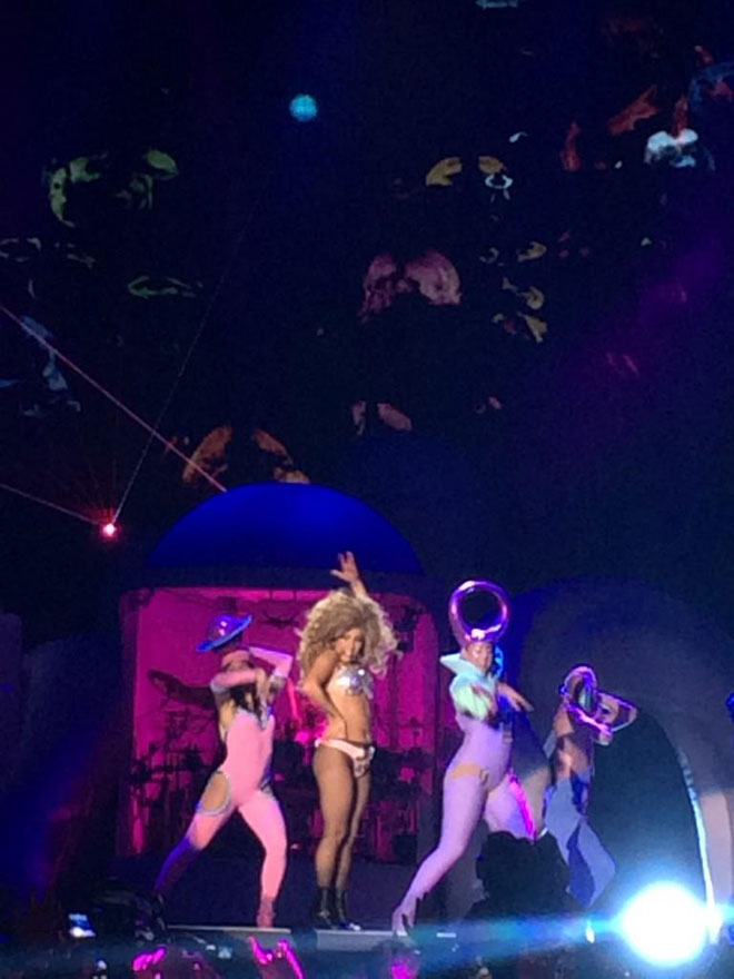 Η Lady Gaga εμφανίστηκε με 8 διαφορετικά outfit και 9 περούκες στην τεράστια σκηνή που στήθηκε στο στάδιο ΟΑΚΑ και ονομάζεται «Χοντρή Κυρία».