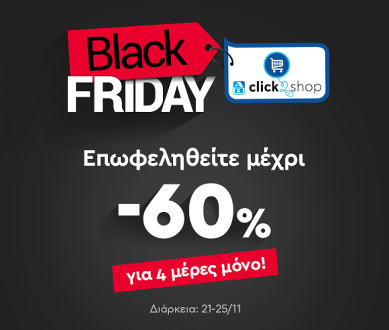 Και επειδή το Black Friday είναι μία από τις μεγαλύτερες γιορτές για κάθε καταναλωτή, η ΑΒ Βασιλόπουλος για πέντε μέρες θα προσφέρει τη δυνατότητα στους πελάτες του AΒ Click2Shop, του ηλεκτρονικού καταστήματος (eshop) της ΑΒ να επιλέγουν συγκεκριμένα προϊόντα καθημερινής χρήσης έως και 60% φθηνότερα.