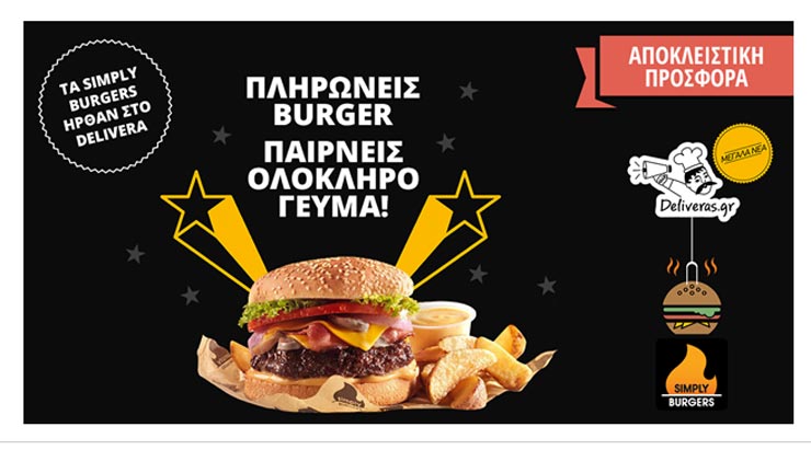 Τα Simply Burgers ήρθαν αποκλειστικά στο deliveras.gr με την πιο χορταστική προσφορά.