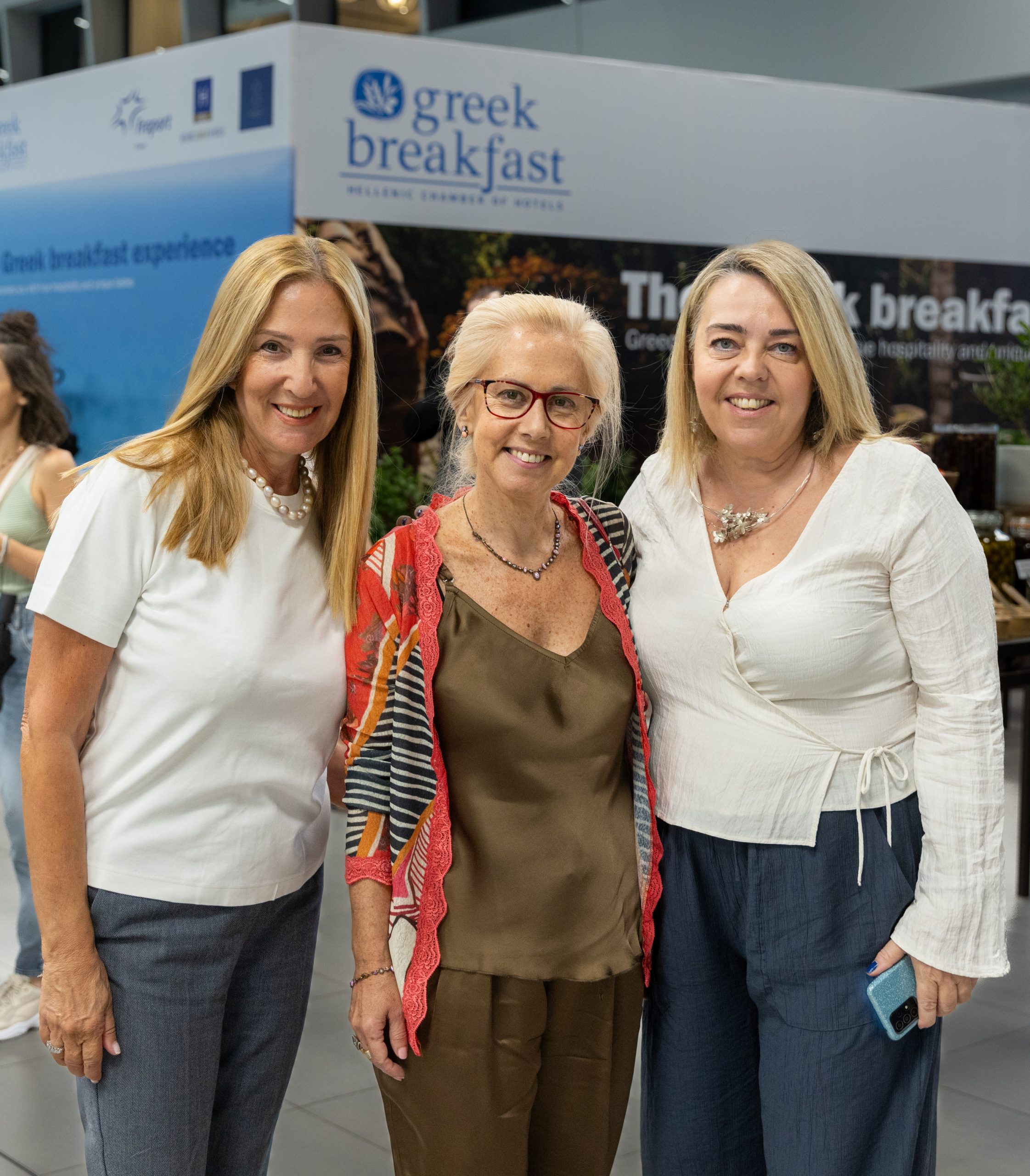 Από αριστερά προς δεξιά, κα Ελένη Παπία, Μέλος Ένωσης Ξενοδόχων Θεσσαλονίκης, κα Αγνή Χριστίδου, Διευθύντρια Ξενοδοχειακού Επιμελητηρίου Ελλάδος, κα Μαρία Τζάννου, Σύμβουλος Marketing «Ελληνικό Πρωινό» Ξενοδοχειακό Επιμελητήριο Ελλάδος