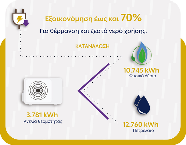 Πιο συγκεκριμένα, η θέρμανση και το ζεστό νερό χρήσης σε έναν χώρο, είναι δύο στοιχεία που επηρεάζουν αρκετά την κατανάλωση ηλεκτρικής ενέργειας και συνεπώς τα έξοδα, καθώς και την εκπομπή ρύπων. Ένα από τα δημοφιλέστερα και αποδοτικότερα συστήματα για θέρμανση και ψύξη του σπιτιού αλλά και ζεστό νερό είναι οι αντλίες θερμότητας, που βασίζονται στη μεταφορά ενέργειας από έναν χώρο χαμηλής θερμοκρασίας σε έναν χώρο υψηλότερης. Συγκρινόμενες με τα συμβατικά συστήματα όπως π.χ. οι καυστήρες πετρελαίου αποδεικνύονται μακράν η πιο βιώσιμη λύση, αφού ένα μέσο νοικοκυριό εγκαθιστώντας την κατάλληλη αντλία θερμότητας, μπορεί να επιτύχει έως 70% εξοικονόμηση ενέργειας, ανάλογα πάντα με το μέγεθος του σπιτιού, τις ανάγκες των πελατών, καθώς και το υφιστάμενο σύστημα θέρμανσης. Η ΔΕΗ μάλιστα ενθαρρύνει τη συγκεκριμένη αγορά, προσφέροντας έως 500€ στους πελάτες για αγορά αντλίας θερμότητας μέσω της ειδικής εφαρμογής, που έχει δημιουργήσει.
