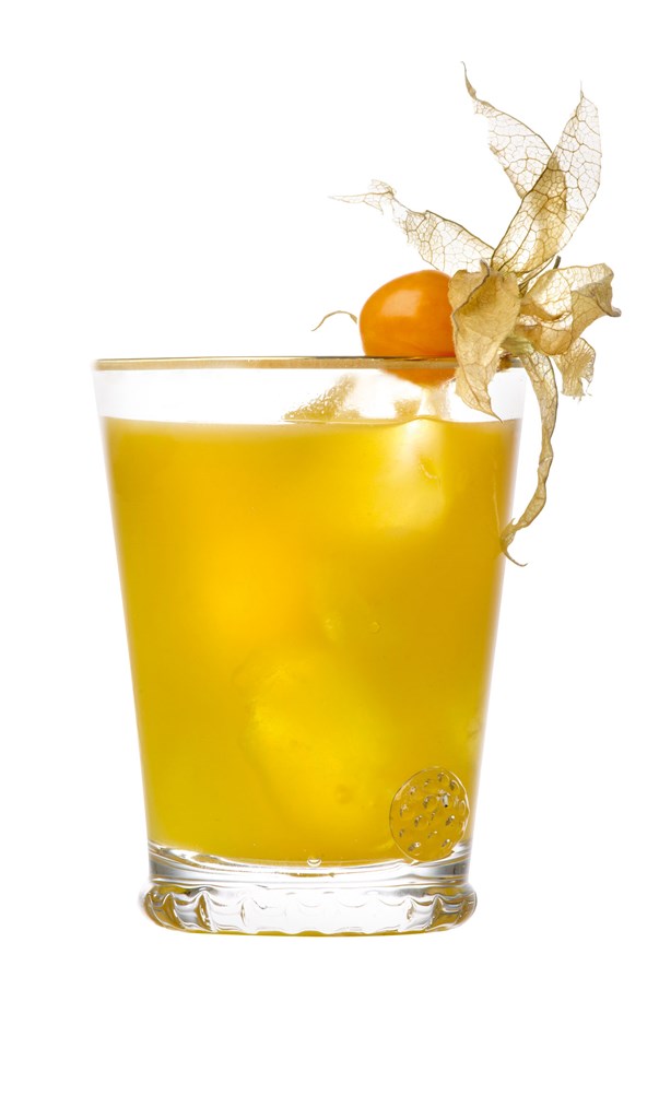 Ρίξτε τα υλικά σε shaker και χτυπήστε δυνατά. Σουρώστε σε παγωμένο ποτήρι goblet.