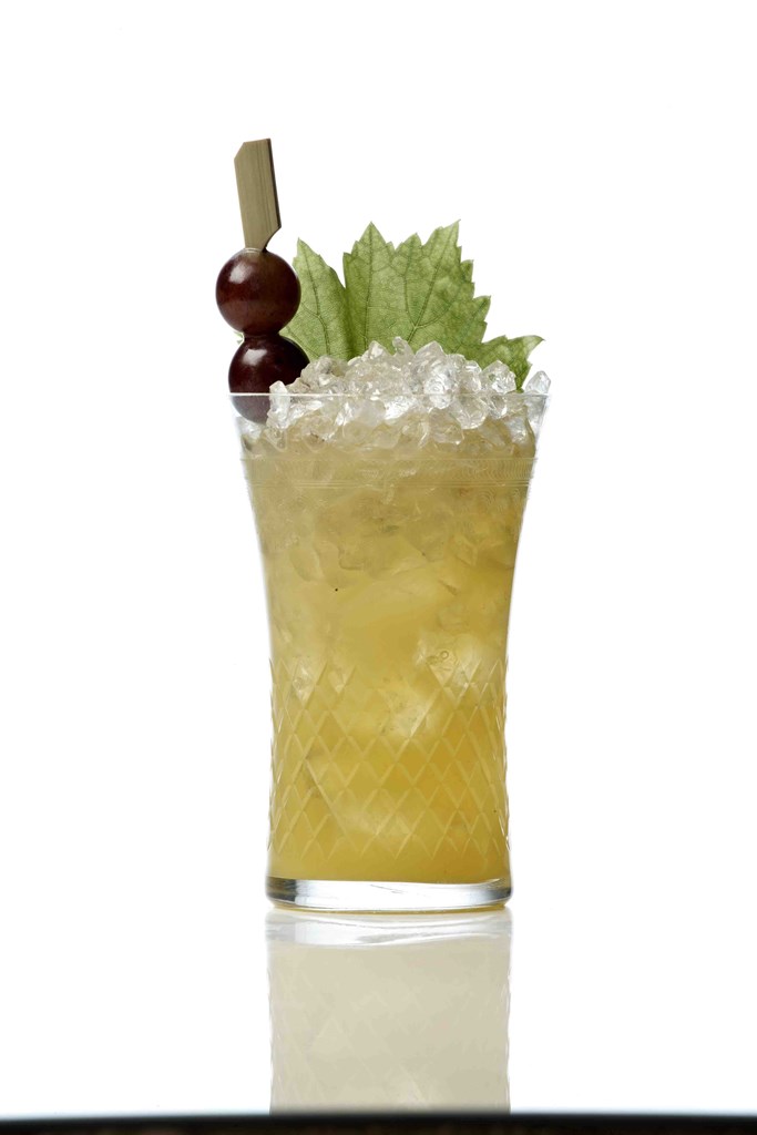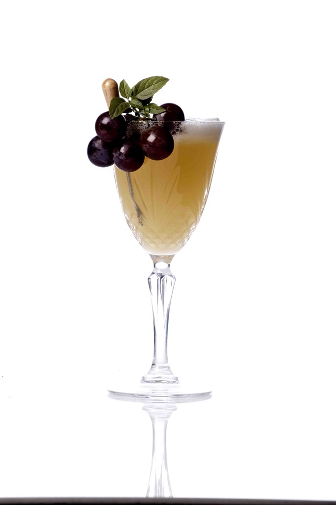 Γαρνιτούρα: φλούδα λεμονιού/πορτοκαλιού ή σταφύλια και φρέσκα φύλλα δυόσμου