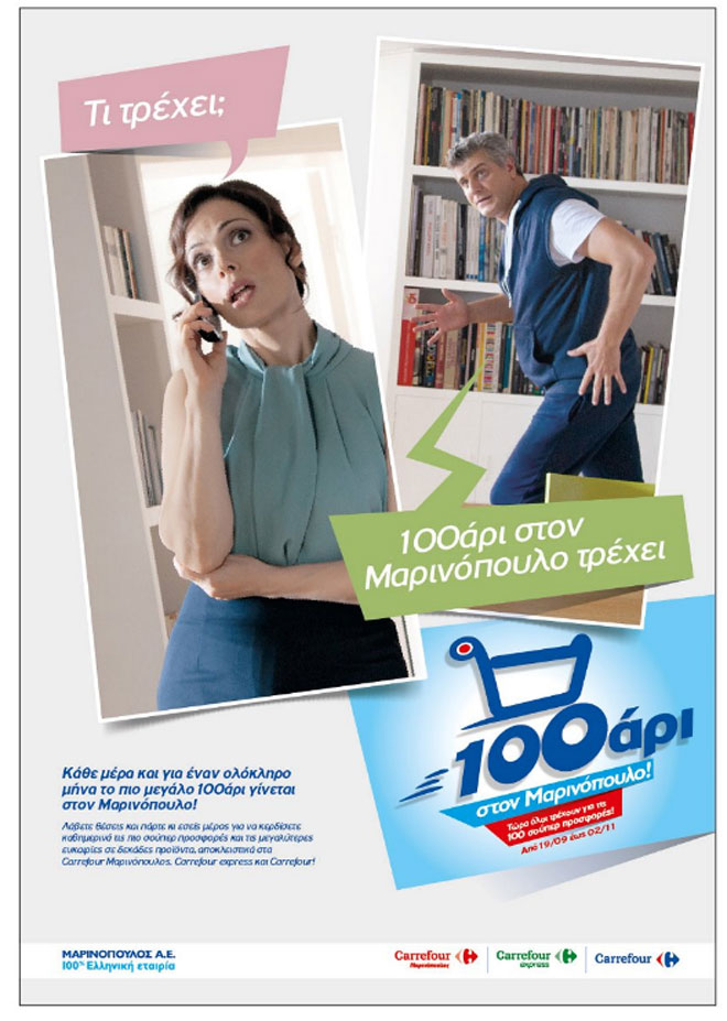 Για έξι ολόκληρες εβδομάδες, από 19 Σεπτεμβρίου έως και 2 Νοεμβρίου, σε όλα τα καταστήματα Carrefour Μαρινόπουλος, Carrefour Express και Carrefour σε όλη την Ελλάδα, πάνω από 100 απίστευτες προσφορές, περιμένουν τους καταναλωτές να τις προλάβουν και να τρέξουν το δικό τους «100άρι» σε έναν αγώνα κέρδους, ποιότητας, ποικιλίας και χαμηλών τιμών!