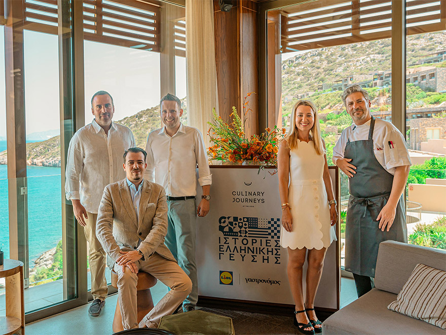 Από αριστερά – δεξιά: Δημήτρης Παπαλεξόπουλος – Γενικός Διευθυντής, Νέες Καθημερινές Εκδόσεις | Γιώργος Μπριλάκης – Γενικός Διευθυντής, Daios Cove | Martin Brandenburger – Πρόεδρος της Διοίκησης, Lidl Ελλάς | Βασιλική Αδαμίδου – Διευθύντρια Επικοινωνίας και Εταιρικής Υπευθυνότητας, Lidl Ελλάς | Μανώλης Παπουτσάκης – Σεφ