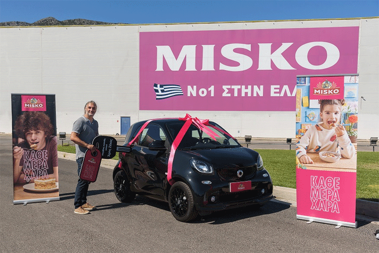 Για την παραλαβή του δώρου του, ο μεγάλος νικητής Αριστείδης Ζάχος, βρέθηκε την Τετάρτη 18 Σεπτεμβρίου στις εγκαταστάσεις παραγωγής των ζυμαρικών MISKO. Κατά τη διάρκεια της επίσκεψής του, είχε την ευκαιρία να δει εκ των έσω, τη διαδικασία παραγωγής των προϊόντων MISKO και να ζήσει την πιο ξεχωριστή εμπειρία ξενάγησης για κάθε λάτρη των ζυμαρικών, πριν αποχωρήσει με το φορτωμένο ζυμαρικά ολοκαίνουριο αυτοκίνητό του!
