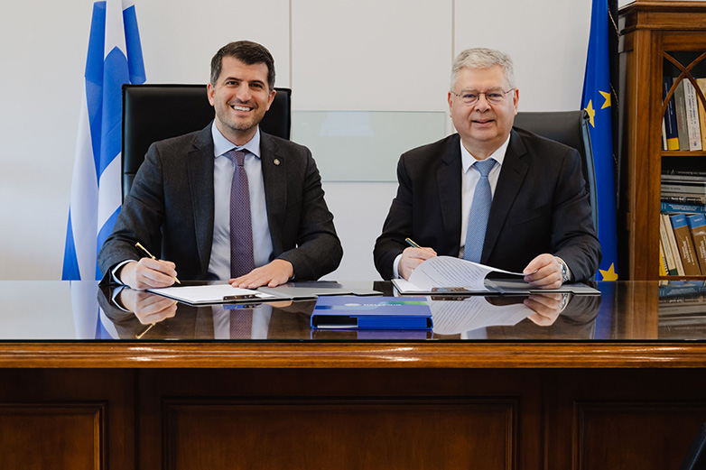 Από αριστερά, ο Πρόεδρος του ΔΣ της HELLENiQ ENERGY κ. Σπήλιος Λιβανός, ο Πρόεδρος του ΣΠΑΠ και Δήμαρχος Κηφισιάς κ. Βασίλης Ξυπολυτάς και δίπλα του ο Διευθύνων Σύμβουλος της HELLENiQ ENERGY κ. Ανδρέας Σιάμισιης.
