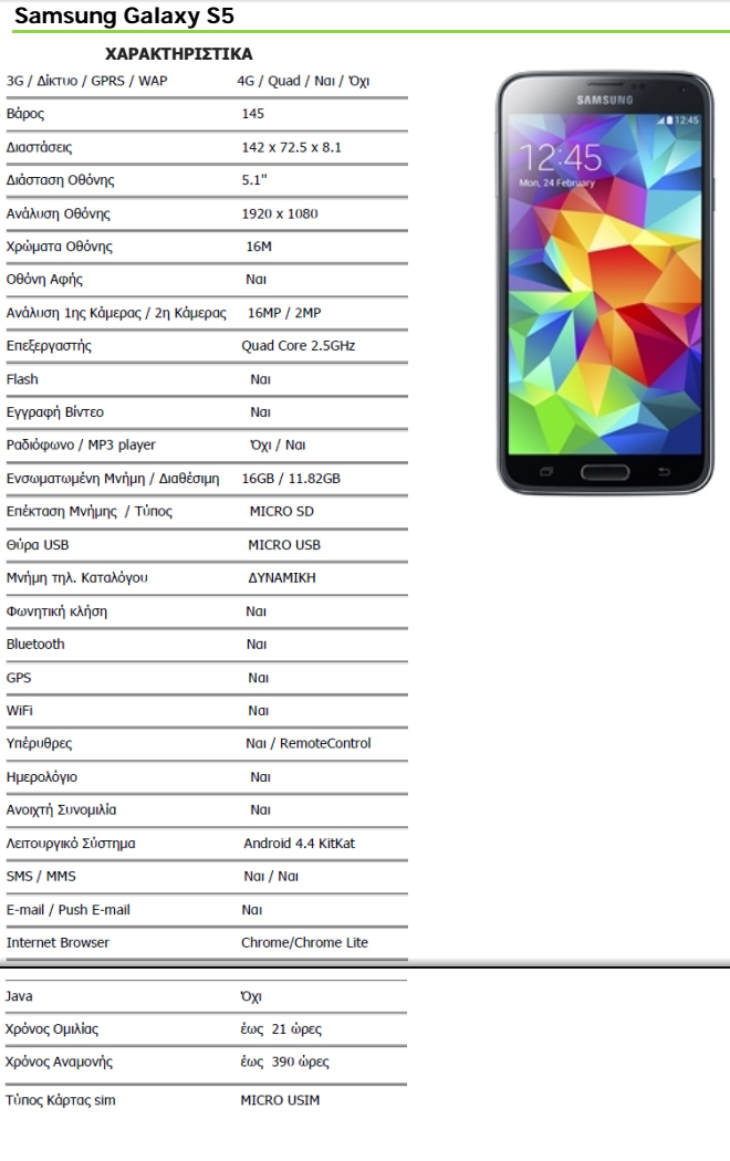 Με προηγμένες λειτουργίες κάμερας (HDR και επιλεκτική εστίαση), με μεγάλη ανθεκτικότητα στη σκόνη και το νερό και με αισθητήρα μέτρησης καρδιακών παλμών, το Samsung Galaxy S5 έρχεται για να ικανοποιήσει ακόμα και τους πιο απαιτητικούς χρήστες. Για να μπορούν να απολαμβάνουν mobile internet με το πιο γρήγορο δίκτυο στην Ελλάδα, το δίκτυο της COSMOTE,σύμφωνα με μετρήσεις μέσω του SpeedTest του ανεξάρτητου φορέα OOKLA, της πιο διαδεδομένης εφαρμογής μετρήσεων internet παγκοσμίως. Το Samsung Galaxy S5 υποστηρίζει, επίσης, την τεχνολογία HD Voice, που μόνο η COSMOTE προσφέρει στην Ελλάδα, για κλήσεις με πεντακάθαρο και κρυστάλλινο ήχο.