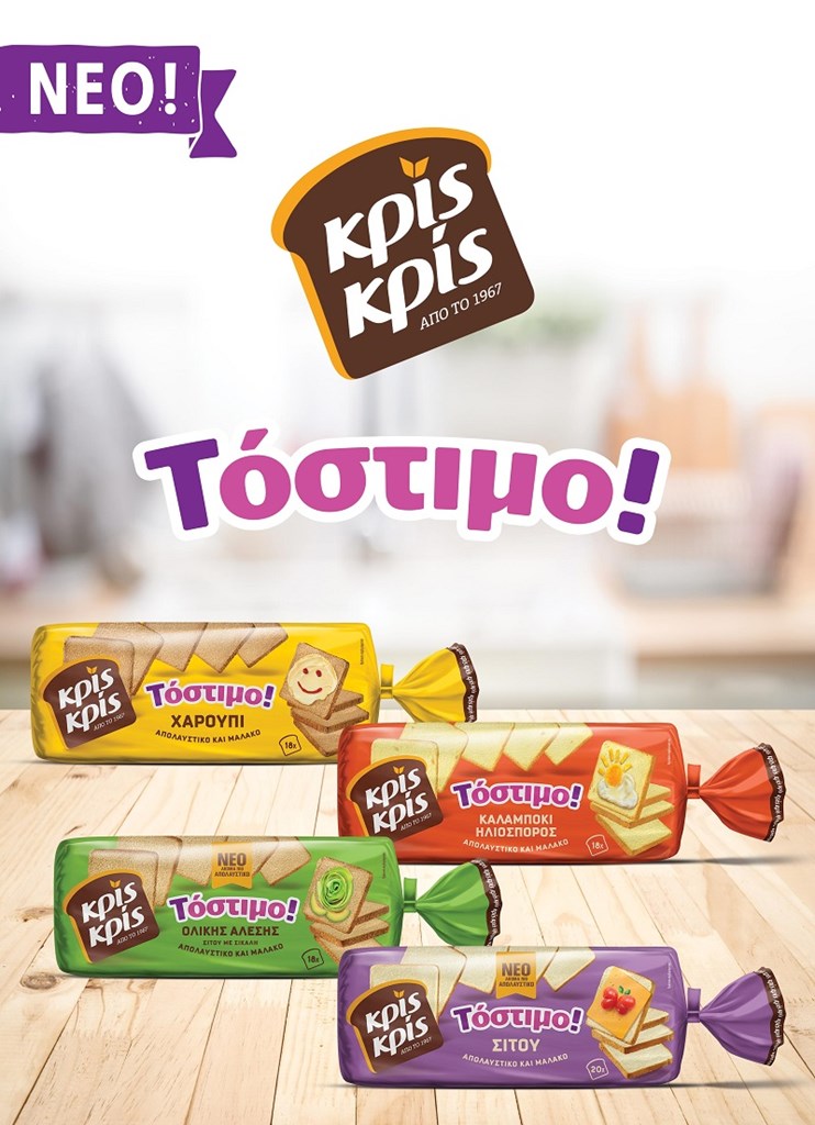 Το Κρίς Κρίς επαναλανσάρει τη σειρά Τόστιμο με νέα, πιο απολαυστική συνταγή για ακόμα πιο αφράτες και μαλακές φέτες ψωμιού τόσο στις ήδη υπάρχουσες γεύσεις Κρις Κρίς Τόστιμο Σίτου & Κρίς Κρίς Τόστιμο Ολικής Άλεσης, όσο και στις 2 νέες ξεχωριστές γεύσεις.