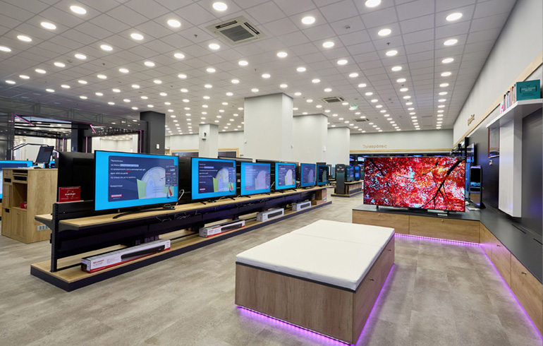 Περιλαμβάνεται μεγάλη έκθεση τηλεοράσεων όπου μπορεί ο πελάτης να συγκρίνει τις διαφορετικές οθόνες.