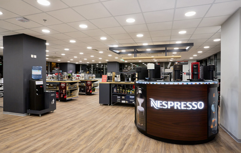 Eιδικά διαμορφωμένους χώρους για μια μοναδική Cooking & Coffee experience, δοκιμάζοντας νέες καφετιέρες και απολαμβάνοντας τον καφέ σε έναν άνετο χώρο.