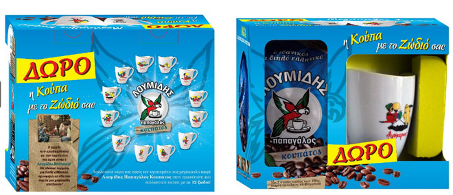 12 συλλεκτικές κούπες, μία για κάθε ζώδιο μπορούν να γίνουν δικές σας με την αγορά δύο συσκευασιών 194γρ. Λουμίδης Παπαγάλος Κουπάτος. Αποκτήστε την κούπα με το δικό σας ζώδιο, αλλά και το ζώδιο των φίλων σας, για να μοιραστείτε μαζί με την παρέα σας τον αγαπημένο σας μεγάααλο καφέ.