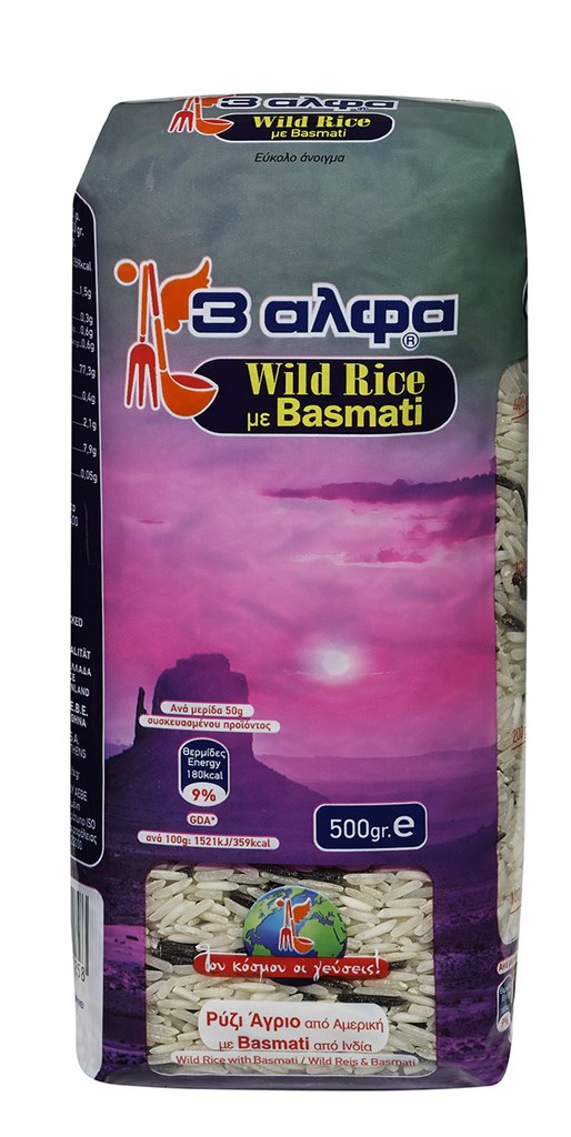 • Ρύζι Άγριο με Basmati Ινδίας, εξωτική γεύση που συνδυάζει το ρύζι από τις λίμνες των Ινδιάνων με το μυρωδάτο ρύζι των Ινδών.
