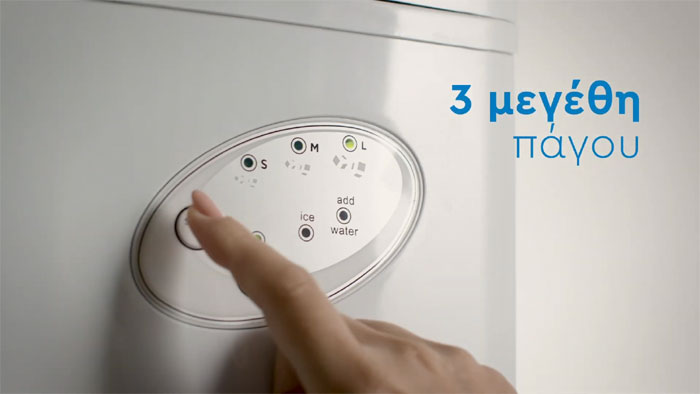 - Εύκολη χρήση: Με το πάτημα ενός κουμπιού τα παγάκια καταλήγουν στο ποτήρι, φρέσκα και πεντακάθαρα. Επιπλέον, από το διαφανές καπάκι μπορείτε να δείτε πότε είναι έτοιμος ο πάγος.