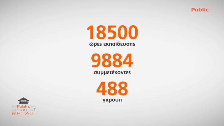 Το 2016, οι εργαζόμενοι στο Δίκτυο καταστημάτων των Public, χωρισμένοι σε ομάδες ανάλογα με τον τομέα στον οποίο απασχολούνται, παρακολούθησαν περισσότερες από 18.500 ώρες εκπαιδευτικών προγραμμάτων, με στόχο την επιμόρφωση τους και την εξέλιξη των τεχνικών και διαπροσωπικών δεξιοτήτων τους.