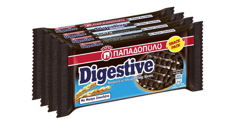 2. DIGESTIVE ΜΕ ΕΠΙΚΑΛΥΨΗ ΜΑΥΡΗΣ ΣΟΚΟΛΑΤΑΣ: Τα Digestive με επικάλυψη μαύρης σοκολάτας, σε snack packs που περιλαμβάνουν τέσσερις mini συσκευασίες, ικανοποιούν την όρεξή σας για γλυκό, κάθε ώρα της