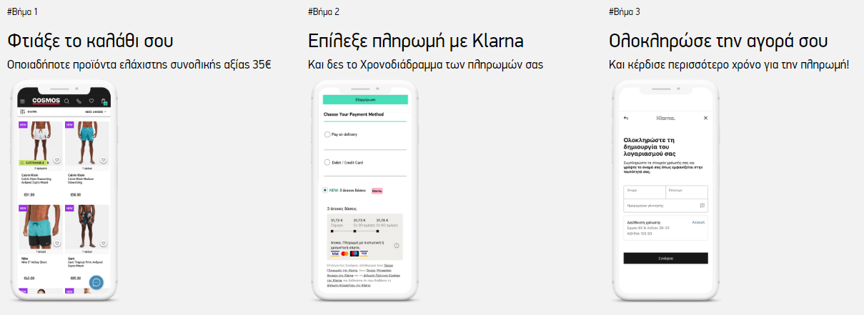 Τα Cosmos Sport φέρνουν, αποκλειστικά στον κλάδο του Sportwear στην Ελλάδα, τον τρόπο πληρωμής “Buy now, pay Later” συνάπτοντας συνεργασία με την Klarna, την κορυφαία παγκοσμίως υπηρεσία πληρωμών και αγορών με 90 εκατομμύρια ενεργούς καταναλωτές, σε πάνω από 250.000 εμπόρους σε 17 χώρες.