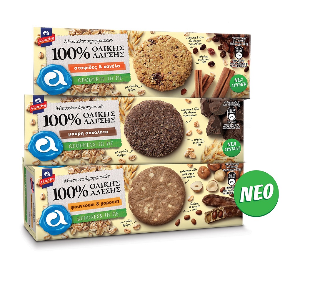 Αυτή τη φιλοσοφία ενσωματώνει η σειρά μπισκότων ΑΛΛΑΤΙΝΗ GOODNESS IN ME από δημητριακά 100% ΟΛΙΚΗΣ ΑΛΕΣΗΣ, με σιτάρι, κριθάρι και νιφάδες βρώμης, η οποία βραβεύθηκε ως «Προϊόν της Χρονιάς 2019» στην κατηγορία Μπισκότα Δημητριακών.