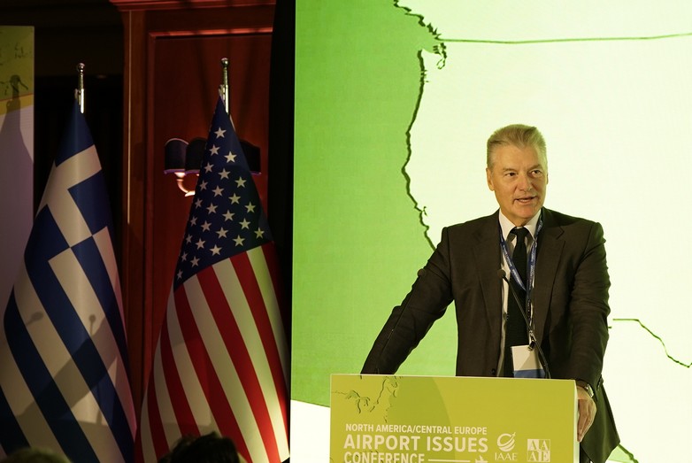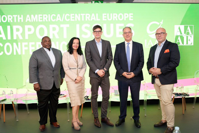 Από αριστερά: ο κ. Perry J. Miller, President & CEO, Richmond International Airport, Past AAAE Chair, η κ. Ιωάννα Παπαδοπούλου, Διευθύντρια Επικοινωνίας & Marketing, ΔΑΑ, ο κ. Matija Bračić, Assistant Professor, Head of Laboratory for Modelling and Simulation in Aviation / Air Traffic Management, University of Zagreb, ο κ. Γιώργος Βήλος, Γενικός Διευθυντής Εμπορικής & Επιχειρηματικής Ανάπτυξης, Fraport Greece και ο κ. Grzegorz Bykowski, Vice President of the Board, Poznan Airport