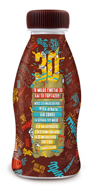 H πρώτη από τις ενέργειες που έχουν προγραμματιστεί, είναι η δημιουργία της επετειακής συσκευασίας για το μπουκάλι regular 500ml, η οποία συνοδεύεται από το σβήσιμο των 30 κεριών των γενεθλίων. Το Milko καλεί όλους να επισκεφθούν την ιστοσελίδα MILKO.GR/FOU και να σβήσουν τα κεράκια του, ώστε να έχουν την ευκαιρία να κερδίσουν στη στιγμή ένα από τα 30 μεγάλα δώρα που προσφέρει το αγαπημένο τους ποτό.