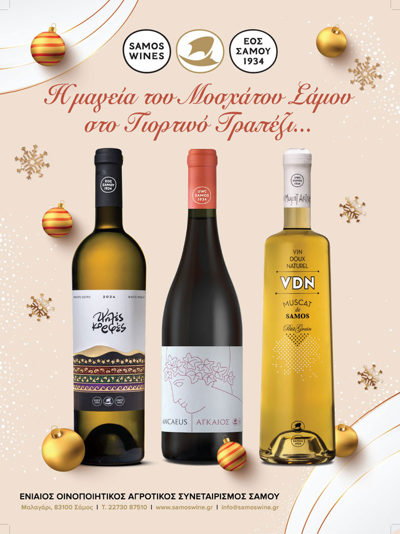 Και φέτος τις γιορτές, τα σαμιώτικα Μοσχάτα παίρνουν και πάλι τον πρωταγωνιστικό τους ρόλο: Όχι μόνο ως συνοδευτικά κρασιά, αλλά ως το αρωματικό νήμα που δένει το γιορτινό δείπνο με την ελληνική παραδοσιακή κουλτούρα.