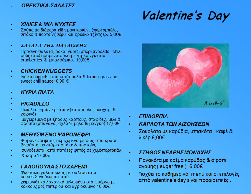 Τα γνωστά και αγαπημένα πολυεθνικά εστιατόρια δημιούργησαν για σας ένα μπουκέτο γεύσεων που θα ιντριγκάρουν τον ουρανίσκο και θα απογειώσουν τις αισθήσεις σας, με εμπνευσμένες ονομασίες στο «ερωτικό πνεύμα» της ημέρας…