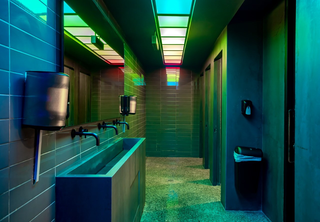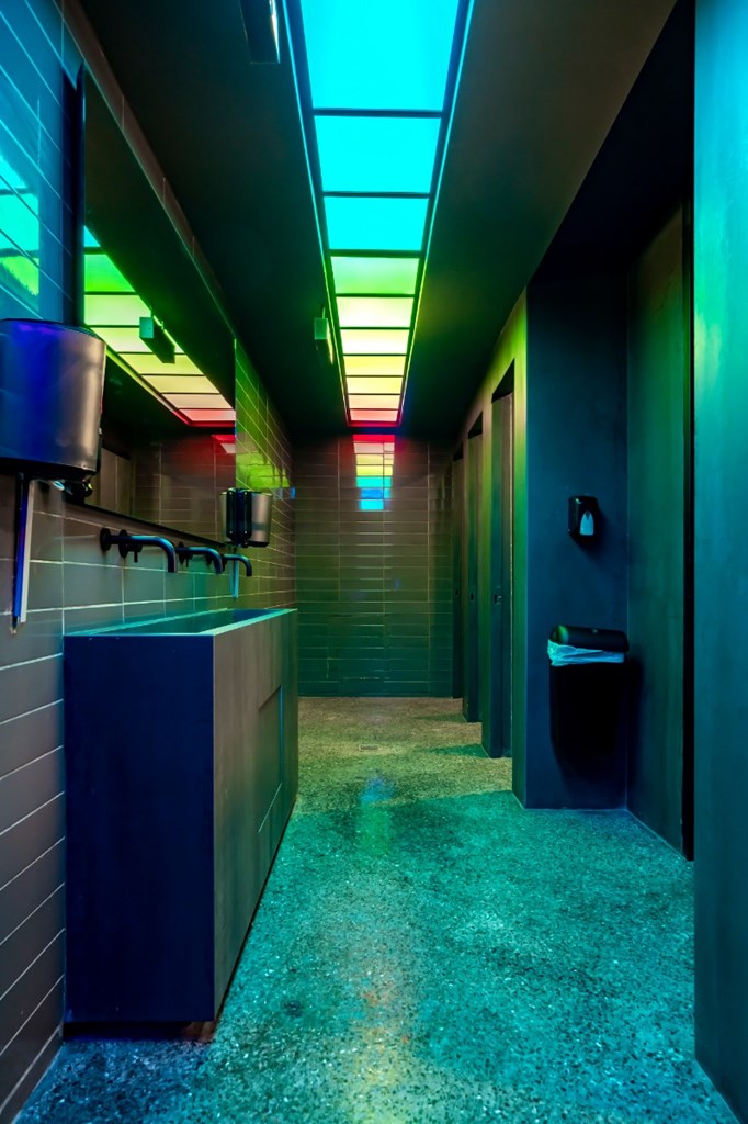 Τέλος, σημαντικό κομμάτι της ταυτότητας του χώρου αποτέλεσαν οι φωτιζόμενες προσόψεις των bar, το σύστημα φωτεινού κανάβου στις οροφές που λειτουργεί σαν ιδιότυπο matrix και οι ιδιοκατασκευές φωτισμού που εφαρμόστηκαν σε τμήματα επιφανειών σε τοίχους και δάπεδα.