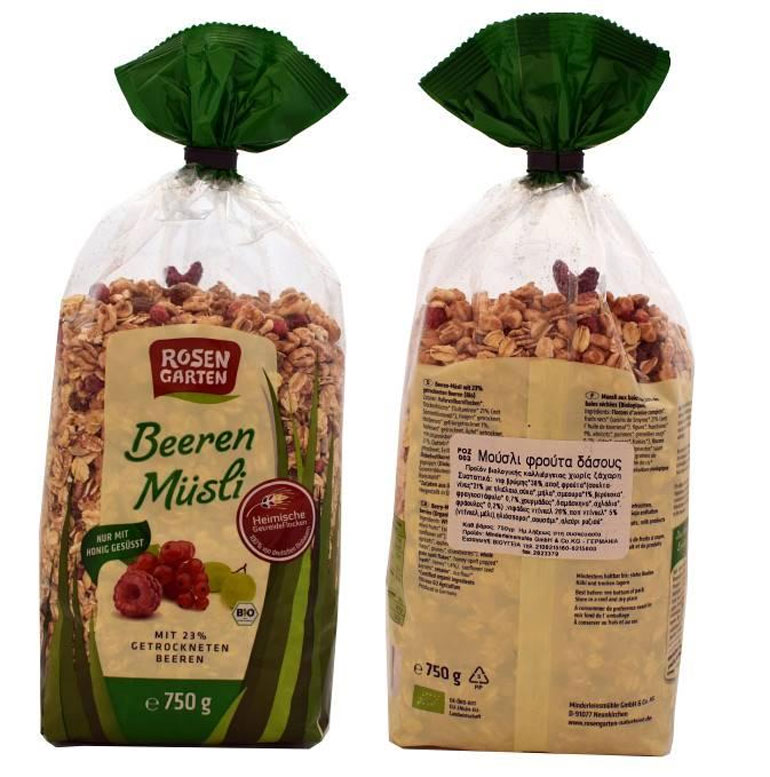 Πρόκειται για το προϊόν με την εμπορική ονομασία «ΜΟΥΣΛΙ ΦΡΟΥΤΑ ΤΟΥ ΔΑΣΟΥΣ ΒΙΟ (Beeren Müsli)», σε συσκευασία των 750 g ανά τεμάχιο, με ανάλωση κατά προτίμηση πριν από 28.05.2018, το οποίο παρασκευάστηκε από τη γερμανική εταιρεία «Rosengarten Minderleinsmühle GmbH & Co. KG» και διακινήθηκε στην Ελλάδα, από την επιχείρηση «ΒΙΟ-ΥΓΕΙΑ Ε.Π.Ε.» (Αργυρουπόλεως 5, Άγ. Στέφανος).
