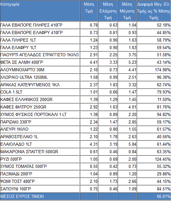 Παραμένει μεγάλο το εύρος τιμών στις μεγάλες αλυσίδες σουπερμάρκετ με σημαντικές δυνατότητες επιλογών και εξοικονόμησης χρημάτων για τους Έλληνες καταναλωτές, σύμφωνα με έρευνα του Ινστιτούτου Έρευνας Λιανεμπορίου Καταναλωτικών Αγαθών (ΙΕΛΚΑ).