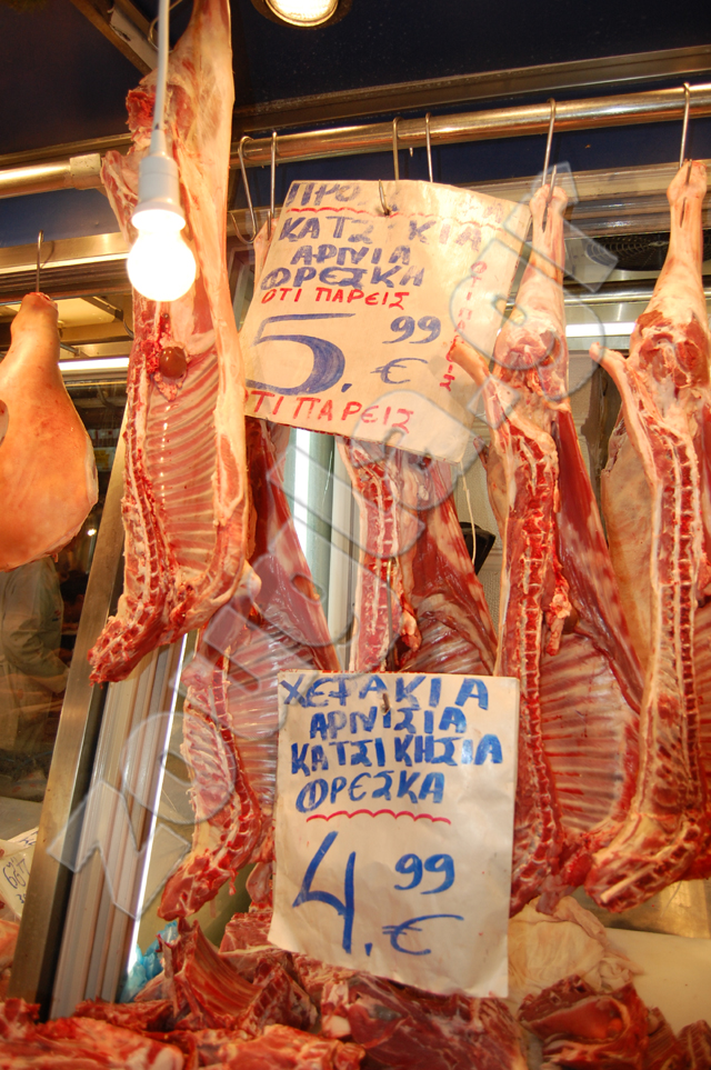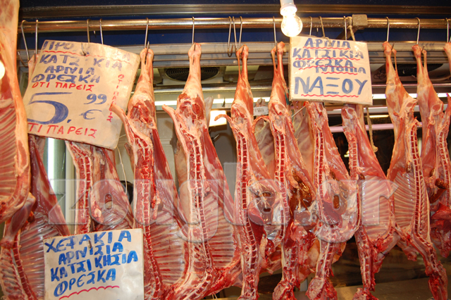 Αντίθετα στη Βαρβάκειο αγορά σήμερα στα τσιγκέλια υπήρχε ντόπιο αρνί στα 6 ευρώ το κιλό ακόμη και γουρουνόπουλο στην ίδια τιμή.