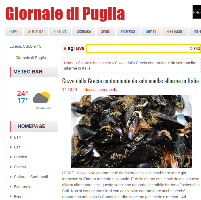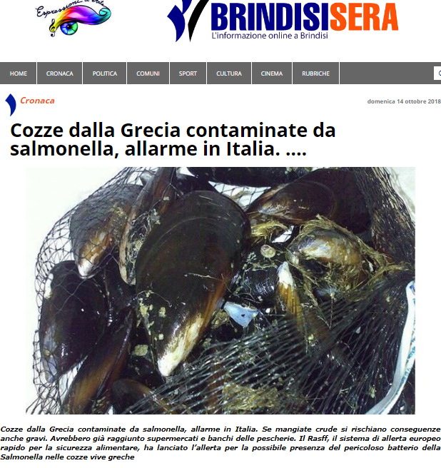 Η είδηση περί ακατάλληλων για κατανάλωση μυδιών από την Ελλάδα κάνει ήδη τον γύρο του ιταλικού διαδικτύου, με τα μέσα ενημέρωσης να αναφέρονται στους κινδύνους.
