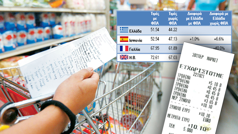Αυτό είναι αποτέλεσμα της πολύ μεγάλης διαφοράς που έχει ο χαμηλός ΦΠΑ ανά χώρα (πρόκειται για τον ΦΠΑ που αναφέρεται σε τρόφιμα και ποτά). Στην Ελλάδα αυτός ο ΦΠΑ από τον Ιανουάριο 2011 είναι 13% (και 23% για αναψυκτικά και χυμούς), σημαντικά υψηλότερος από την Αγγλία (0%) και τη Γαλλία (10% και 5,5%) και την Ισπανία (10% και 4%), αλλά και τις περισσότερες χώρες της ΕΕ.