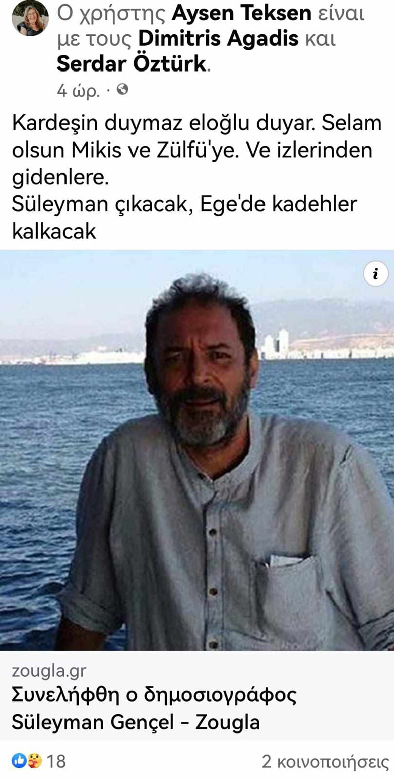 Και μία ακόμη σημαντική λεπτομέρεια. Ο Σουλεϊμάν αντιμετωπίζει σοβαρότατο πρόβλημα υγείας και ακολουθεί συγκεκριμένη θεραπεία. Το τουρκικό δικαστήριο δεν έλαβε υπόψιν την έκκληση του δικηγόρου να εκτελεστεί η ποινή φυλάκισης του δημοσιογράφου σε κατ’ οίκον κράτηση, ώστε να ακολουθήσει χωρίς πρόβλημα τις θεραπείες του.