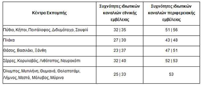 Τα κέντρα εκπομπής που θα ενεργοποιηθούν είναι 20 καθώς το κέντρο εκπομπής «Πλάκα» στην Αλεξανδρούπολη εκπέμπει ήδη ψηφιακά στις μεταβατικές συχνότητες.