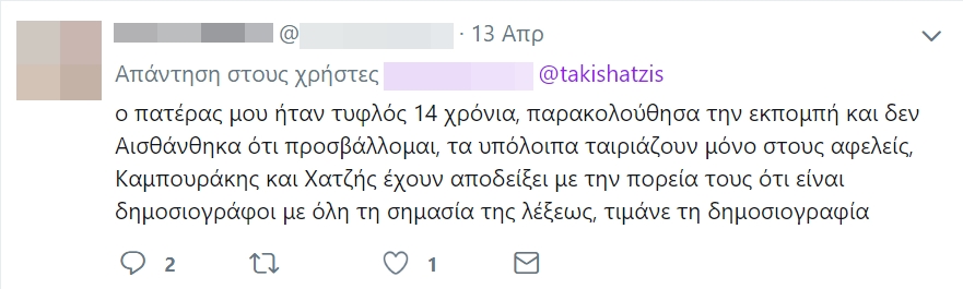 υπήρχαν και κάμποσα υποστηρικτικά προς τον Τάκη Χατζή