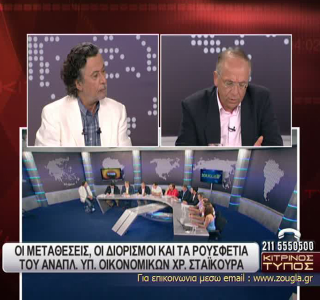 Οι μεταθέσεις, οι διορισμοί και τα ρουσφέτια του αναπληρωτή υπουργού Οικονομικών, Χρήστου Σταϊκούρα, βρέθηκαν στο επίκεντρο των συζητήσεων. Αλγεινή εντύπωση προκάλεσε το γεγονός ότι, ενώ βρισκόταν σε εξέλιξη η παρουσίαση του συγκεκριμένου θέματος, σταμάτησε η προβολή της εκπομπής από το συνεργαζόμενο «Κανάλι Ένα» της Λαμίας.