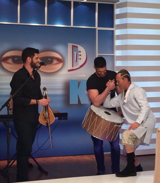 Ο 25χρονος Κωνσταντίνος Δρούλιας και ο 23χρονος αδερφός του Ηλίας ξεσήκωσαν με τη λύρα και το νταούλι τους τον Λάκη, ο οποίος ήρθε στο κέφι και χόρεψε…πεντοζάλι, κλέβοντας την παράσταση.