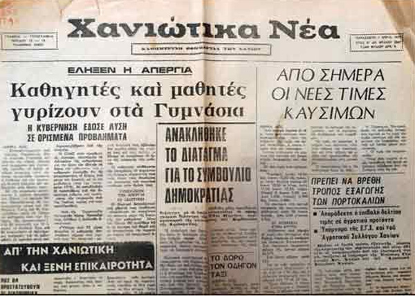 Σήμερα, σε εξοντωτικούς καιρούς για τον Περιφερειακό Τύπο, τα «Χανιώτικα νέα» συνεχίζουν την προσπάθειά τους. Συνεχίζουν να γράφουν τις μικρομέγαλες ιστορίες του τόπου μας, συνεχίζουν να είναι ανοικτά για κάθε ψύχραιμη φωνή που θέλει να ακουστεί. Με την ελπίδα να συνεχίσουμε και τα επόμενα χρόνια να γράφουμε αυτή την εφημερίδα μαζί με εσάς.