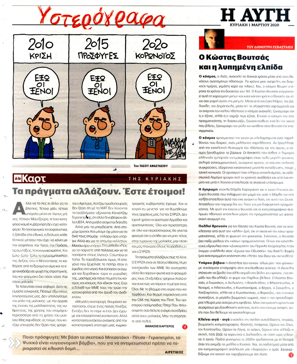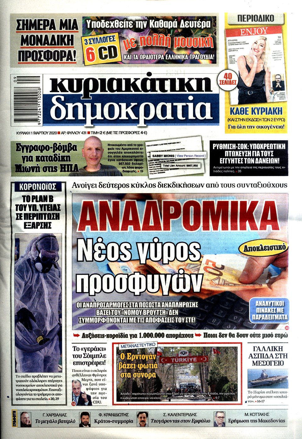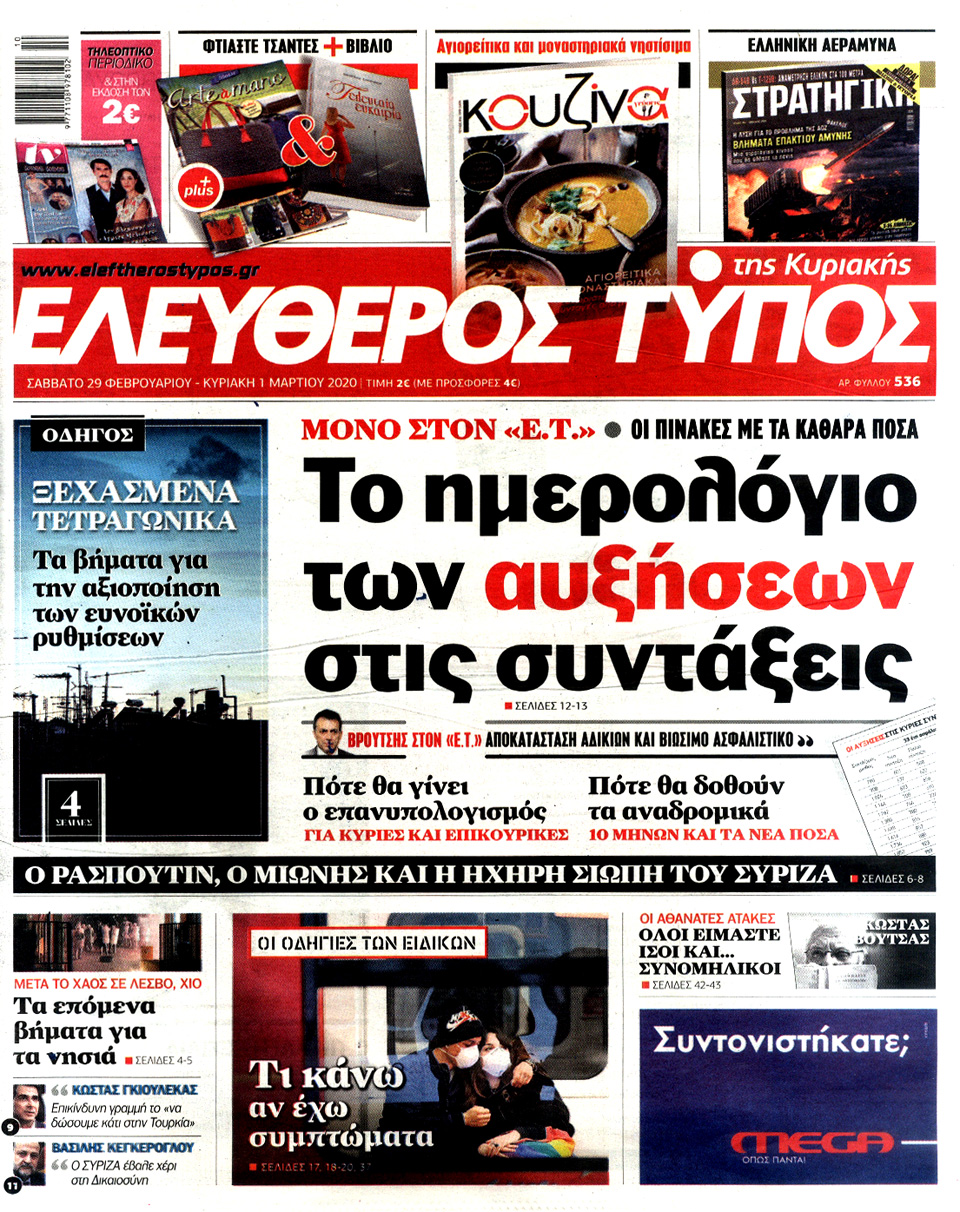 Διαβάστε στο zougla.gr τα πρωτοσέλιδα και τα οπισθόφυλλα των εφημερίδων του Σαββάτου και των φύλλων της Κυριακής που κυκλοφορούν εκτάκτως.