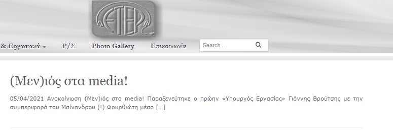 «Παραξενεύτηκε ο πρώην «Υπουργός Εργασίας» Γιάννης Βρούτσης με την συμπεριφορά του Μαίνανδρου (!) Φουρθιώτη μέσα στο κτίριο που στεγάζει το ομώνυμο Υπουργείο. Αν ο κ. Βρούτσης δεν απαξίωνε, αλλά συναντούσε τους συνδικαλιστές του χώρου μας θα είχε μάθει νωρίτερα για τις συμπεριφορές του. Όμως είναι οπαδός της αυτορρύθμισης της Αγοράς και της δήθεν συνεννόησης μεταξύ εργοδοτών και εργαζομένων, λες και τα δύο μέρη είναι ισοδύναμα.