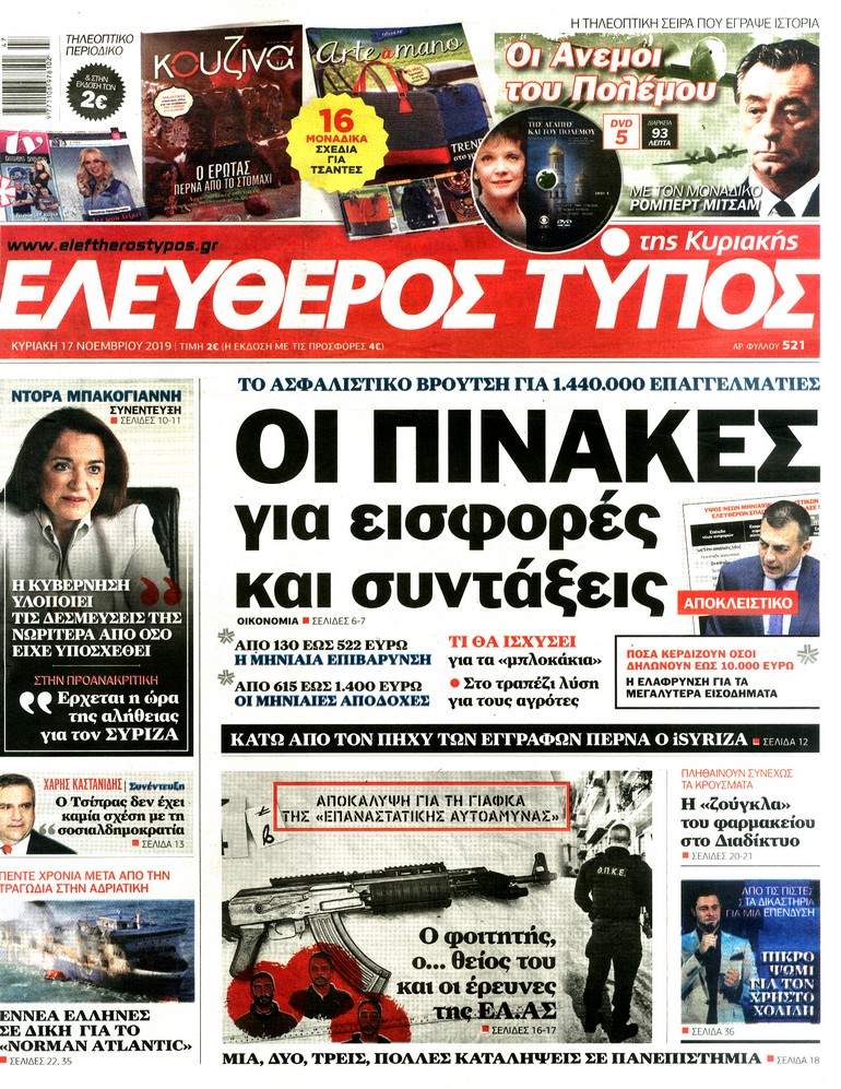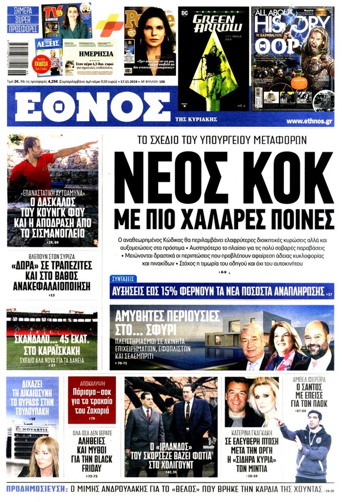 Διαβάστε στο zougla.gr τα πρωτοσέλιδα και τα οπισθόφυλλα των εφημερίδων της Κυριακής.