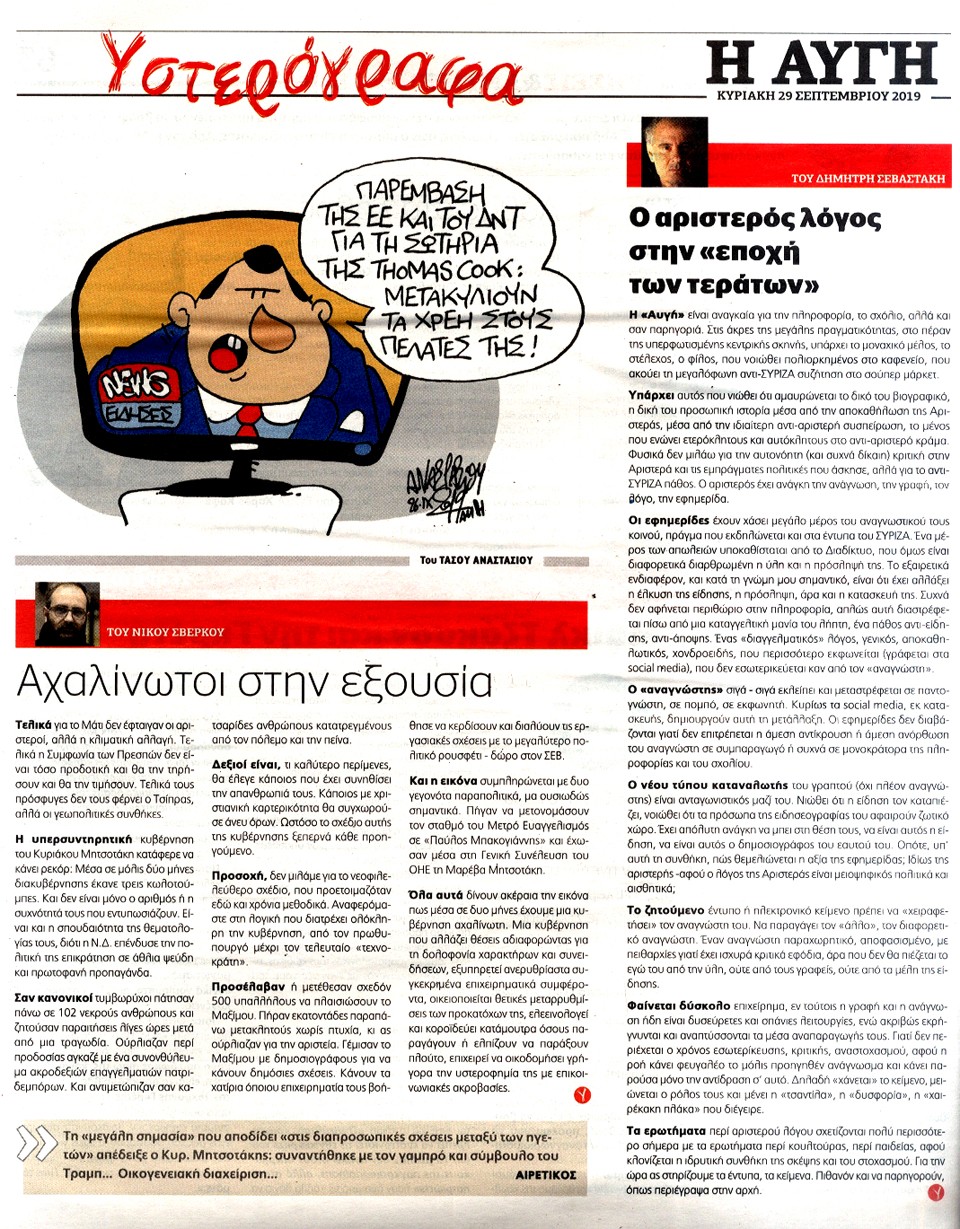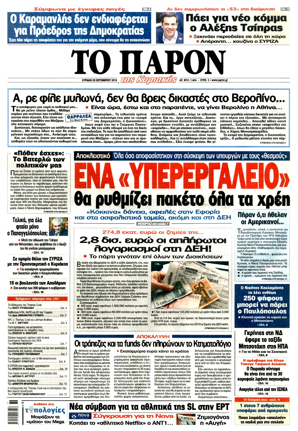 Διαβάστε στο zougla.gr τα πρωτοσέλιδα και τα οπισθόφυλλα των εφημερίδων της Κυριακής.