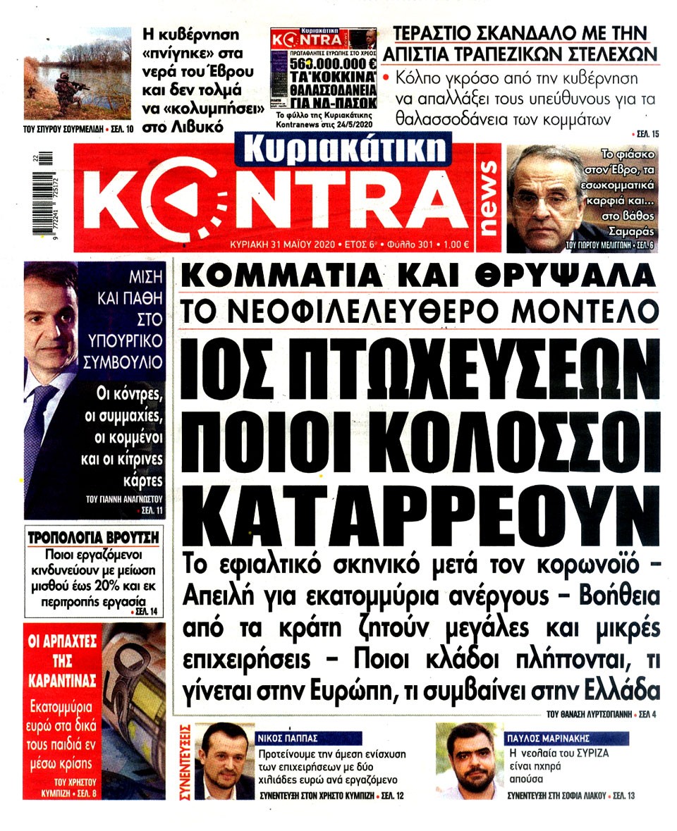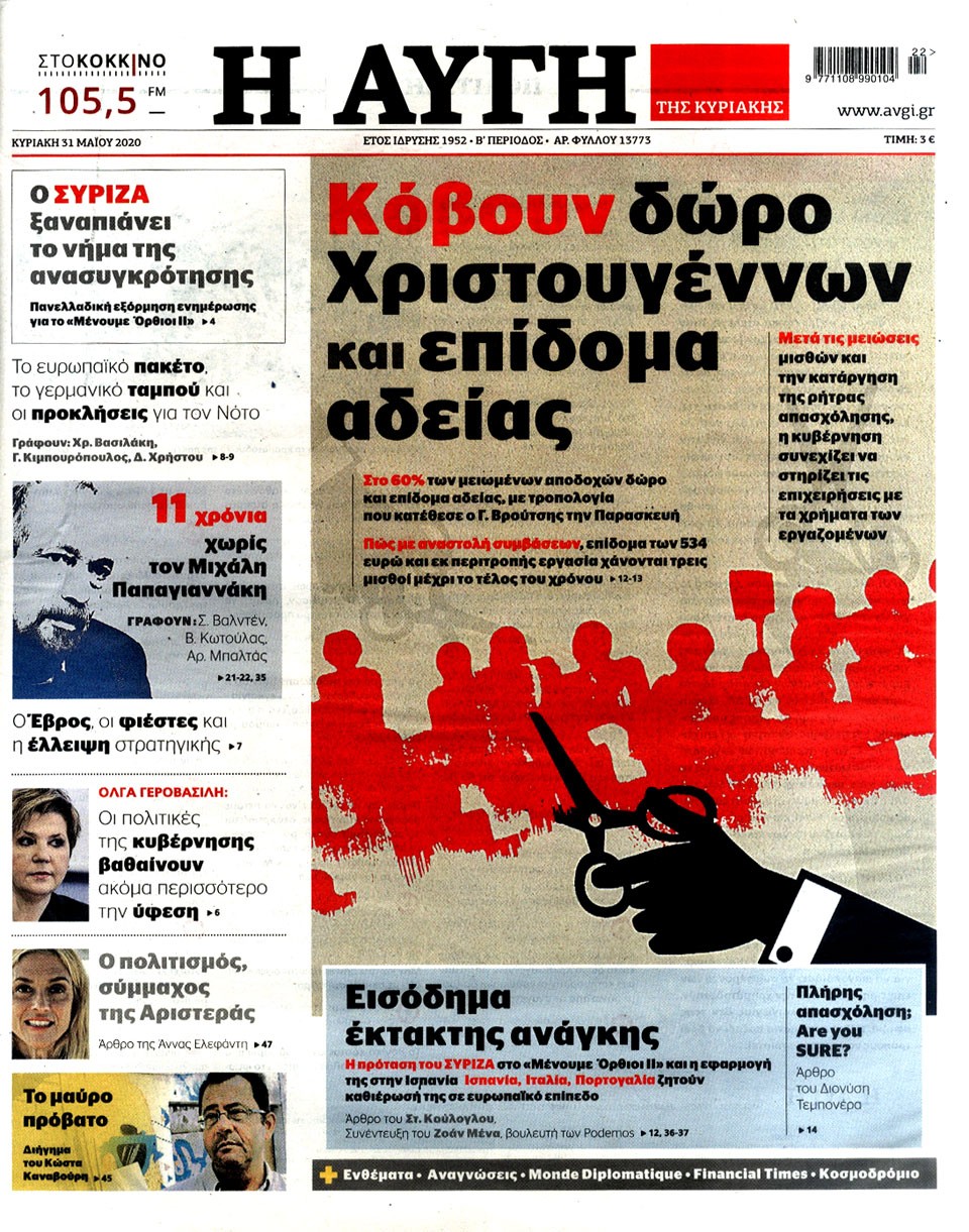 Διαβάστε στο zougla.gr τα πρωτοσέλιδα και τα οπισθόφυλλα των εφημερίδων της Κυριακής.