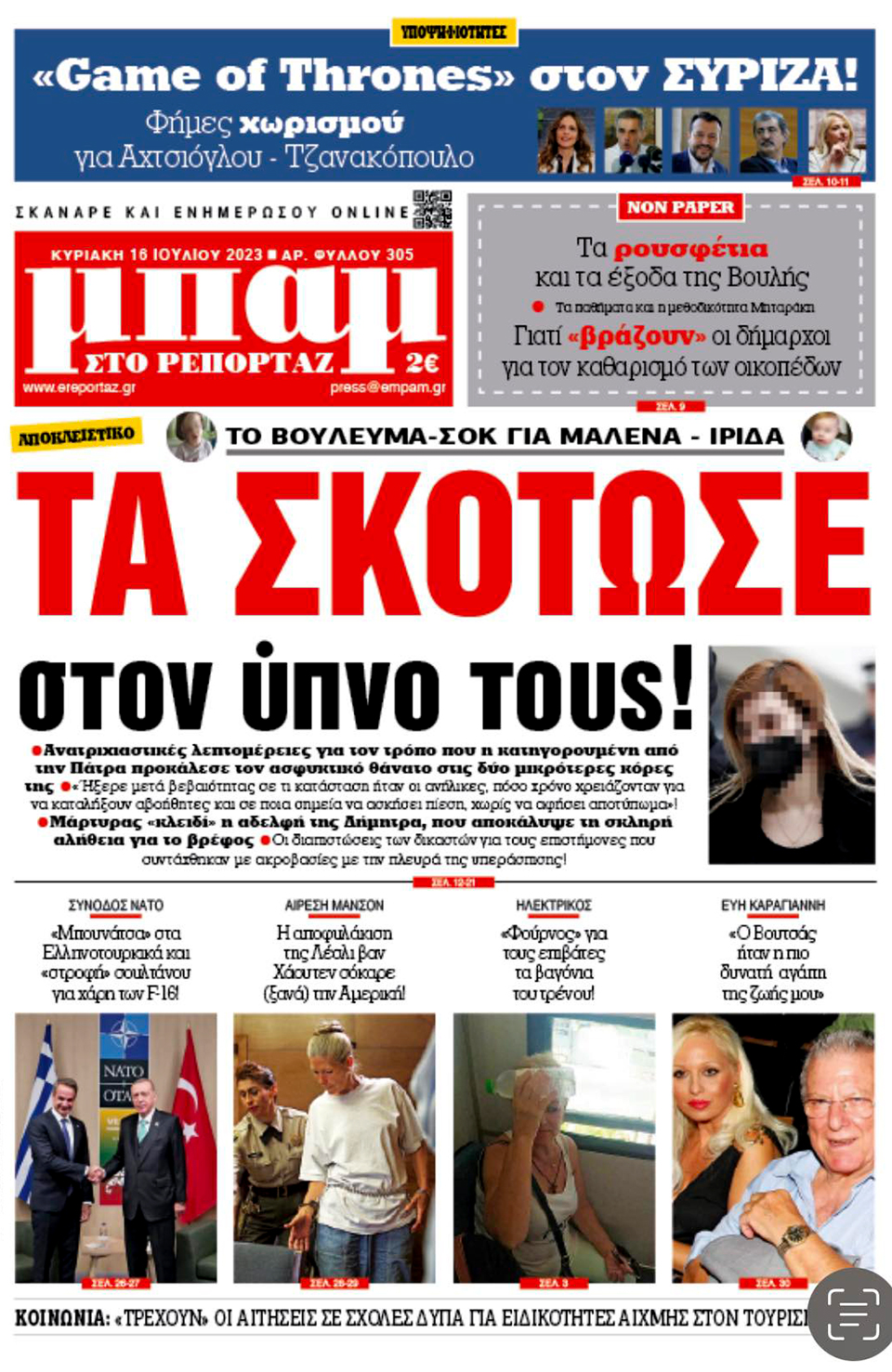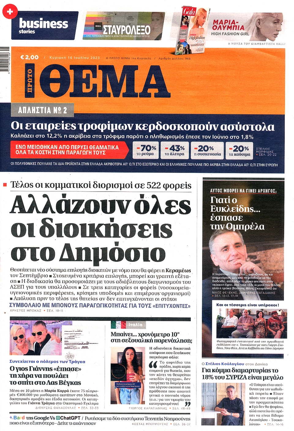 Διαβάστε στο zougla.gr τα πρωτοσέλιδα και τα οπισθόφυλλα των εφημερίδων της Κυριακής.