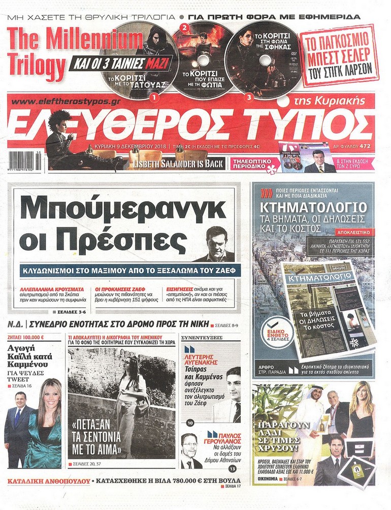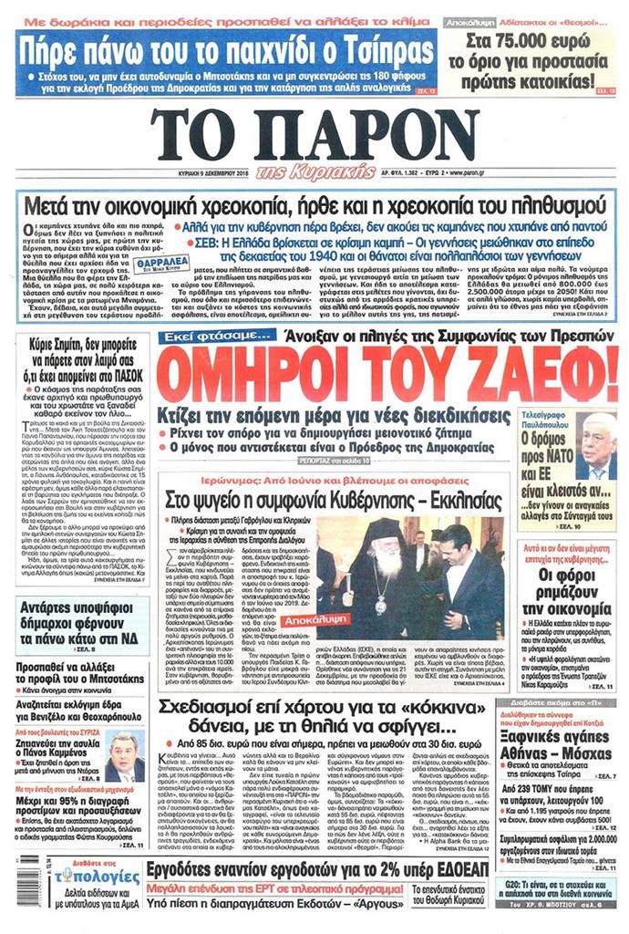 Διαβάστε στο zougla.gr τα πρωτοσέλιδα και τα οπισθόφυλλα των εφημερίδων της Κυριακής.