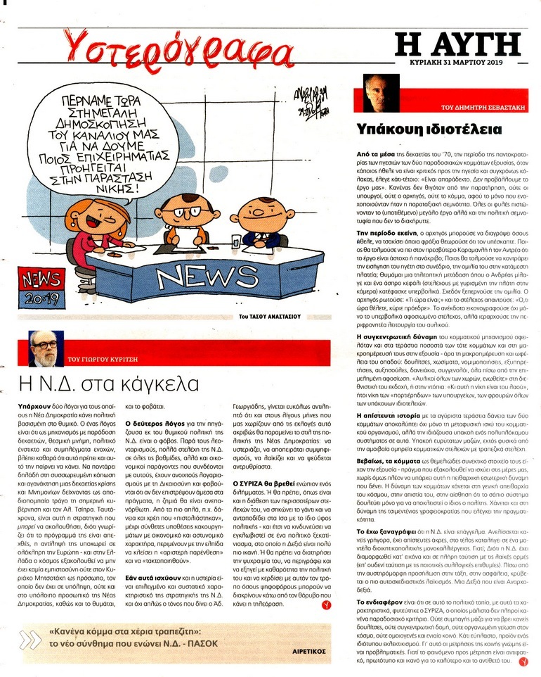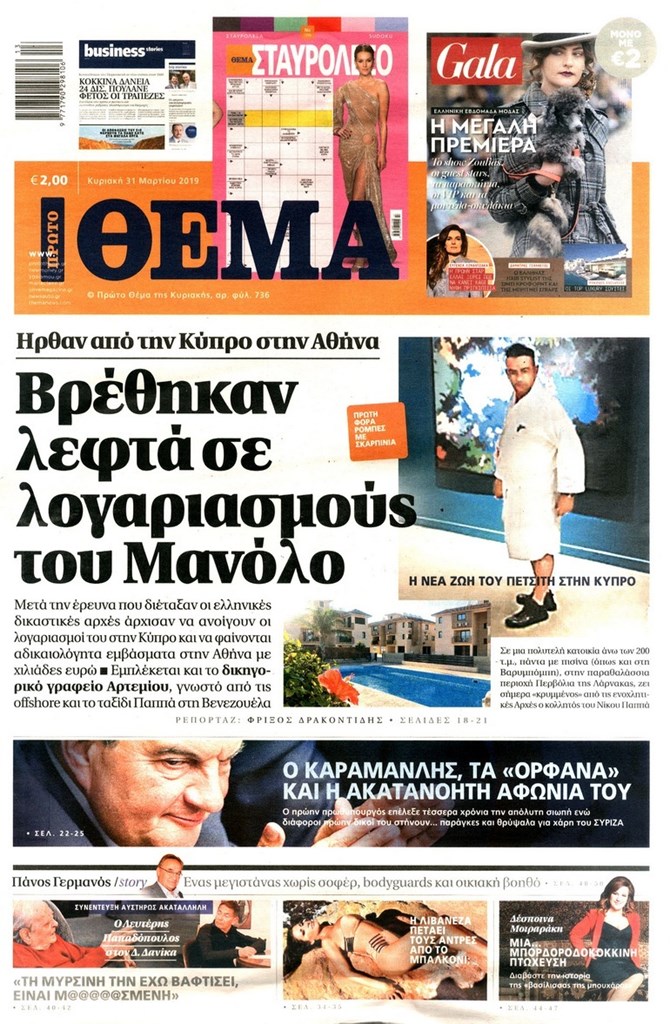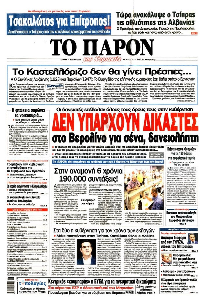 Διαβάστε στο zougla.gr τα πρωτοσέλιδα και τα οπισθόφυλλα των εφημερίδων της Κυριακής.
