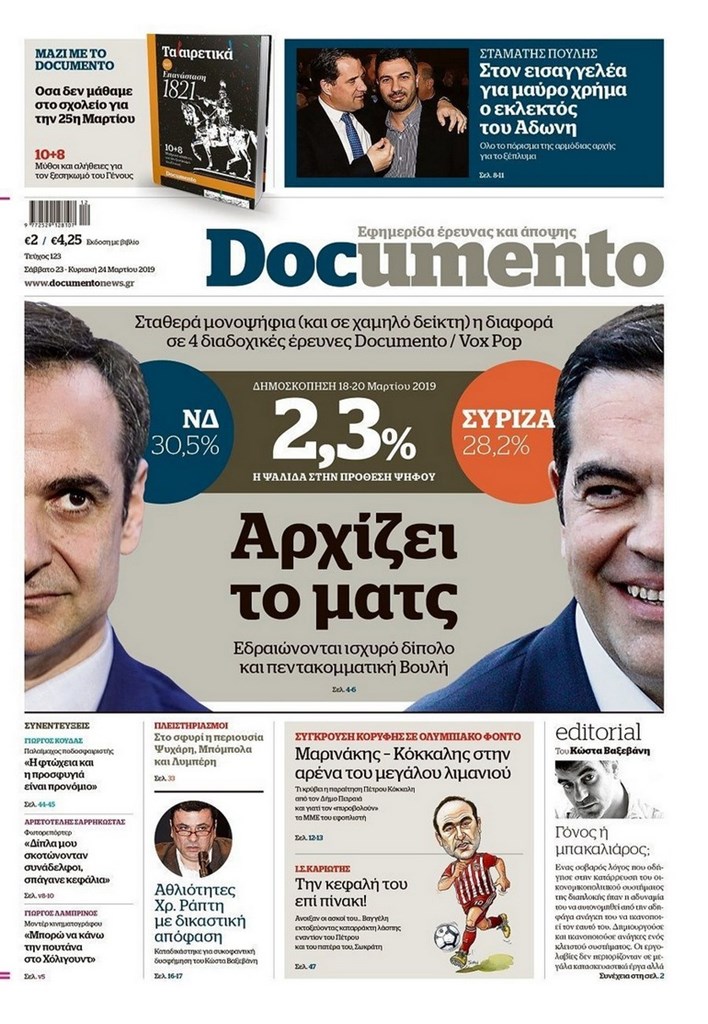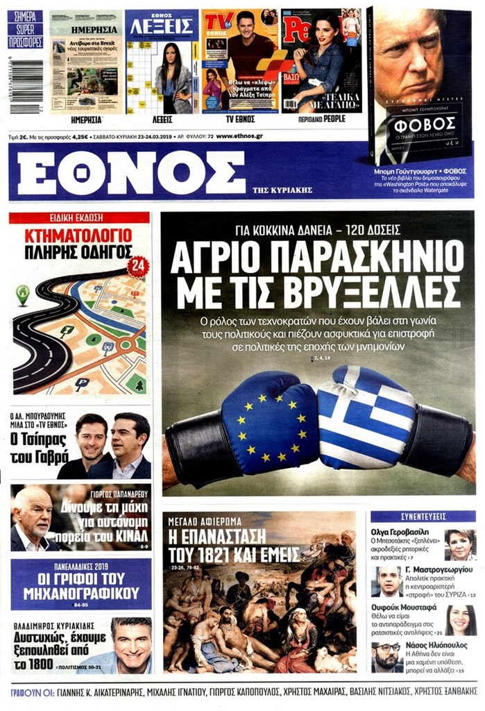 Διαβάστε τα πρωτοσέλιδα των κυριακάτικων εφημερίδων που κυκλοφόρησαν εκτάκτως το Σάββατο, λόγω της Εθνικής Επετείου της 25ης Μαρτίου.