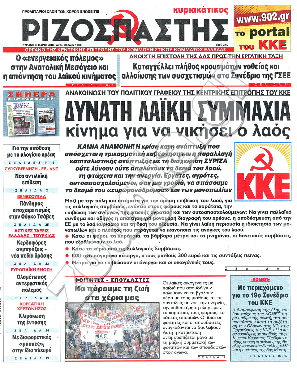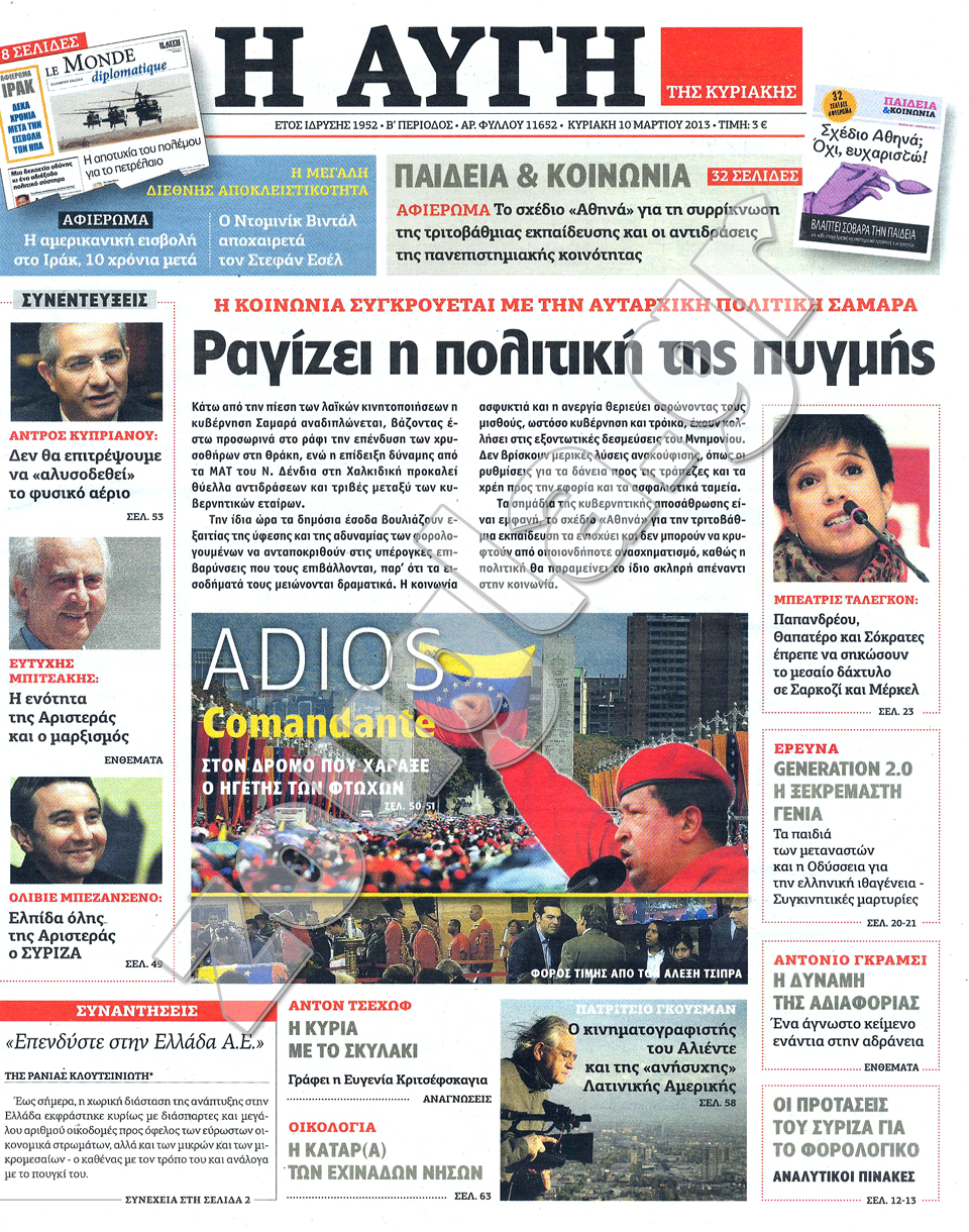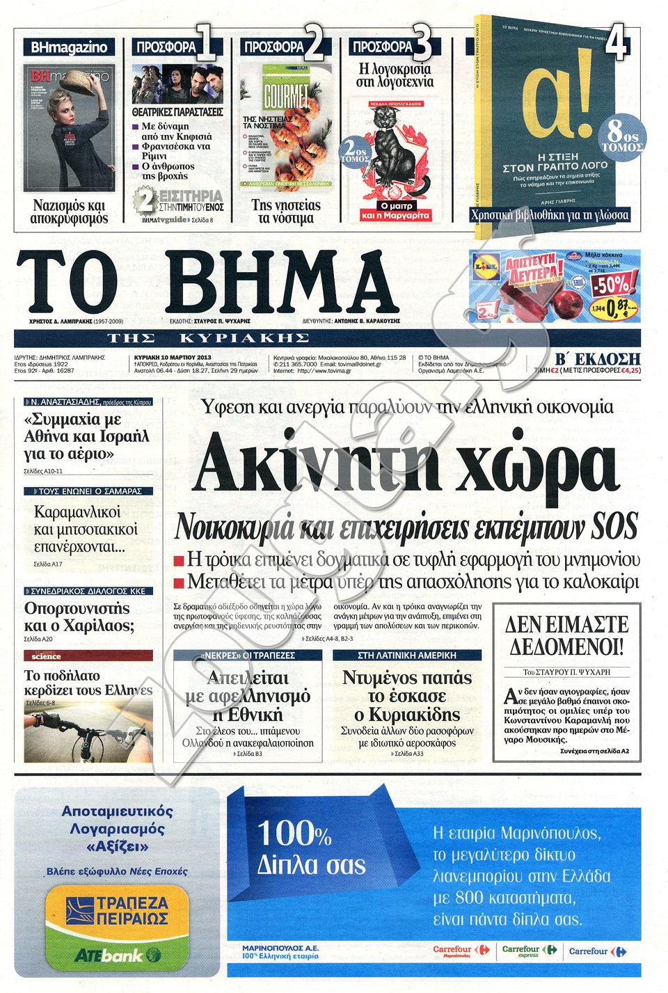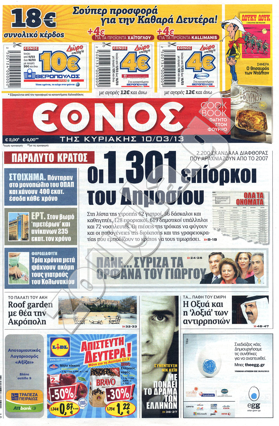 Διαβάστε στη zougla.gr τα πρωτοσέλιδα των κυριακάτικων εφημερίδων.